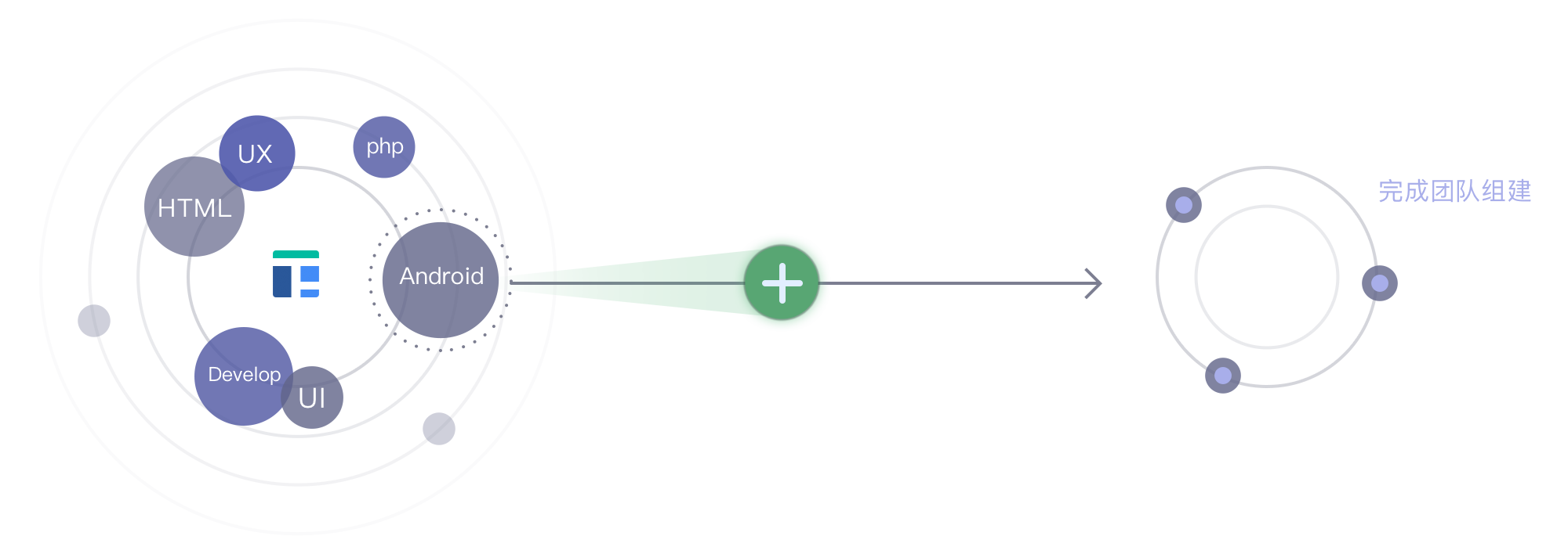 Toppro平台收到A企业的人才需求后,会在人才网络中寻找和匹配最合适的人员,比如选选择1名资深(PD4+)UI设计师,1名高级(PD3+)iOS开发工程师,加入到A企业的技术团队后,开始工作。